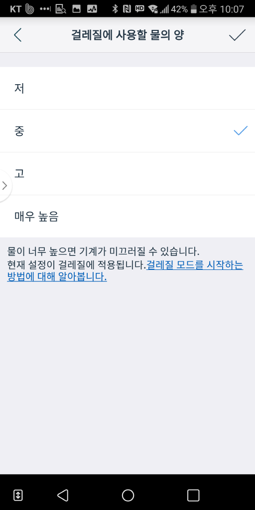 전작인 DD35에는 저,중.고 3단계만 설정이 가능합니다.
