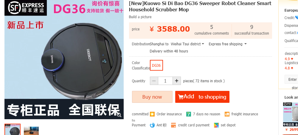 걸레 또한 아직 중국쪽웹에서 판매하지는 않고 있습니다.