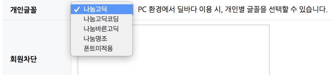정보수정 페이지에서, PC 환경에서의 글꼴 설정이 가능합니다.