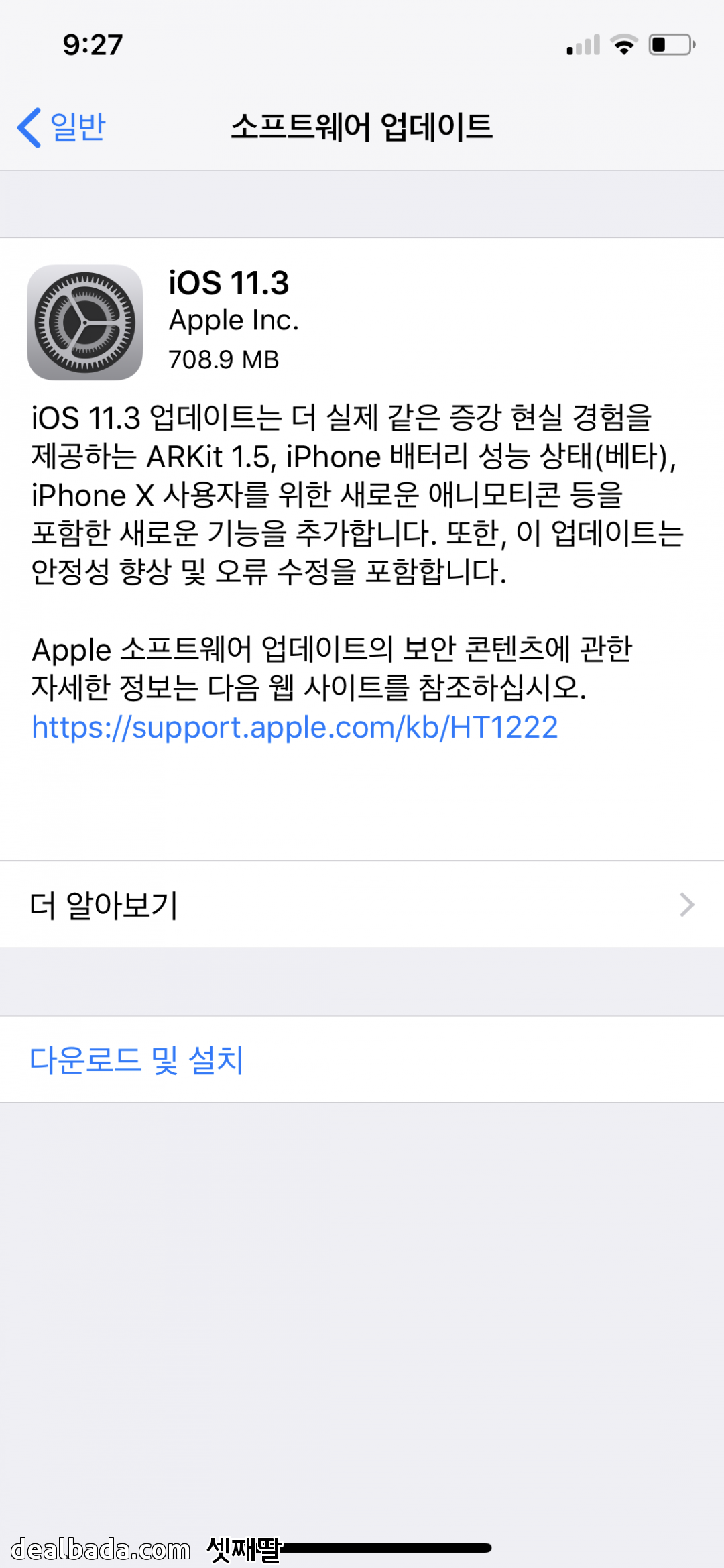 iOS 11.3 업데이트는 더 실제 같은 증강 현실 경험을 제공하는 ARKit 1.5, iPhone 배터리 성능 상태(베타), iPhone X 사용자를 위한 새로운 애니모티콘 등을 포함한 새로운 기능을 추가합니다. 또한, 이 업데이트는 안정성 향상 및 오류 수정을 포함합니다.