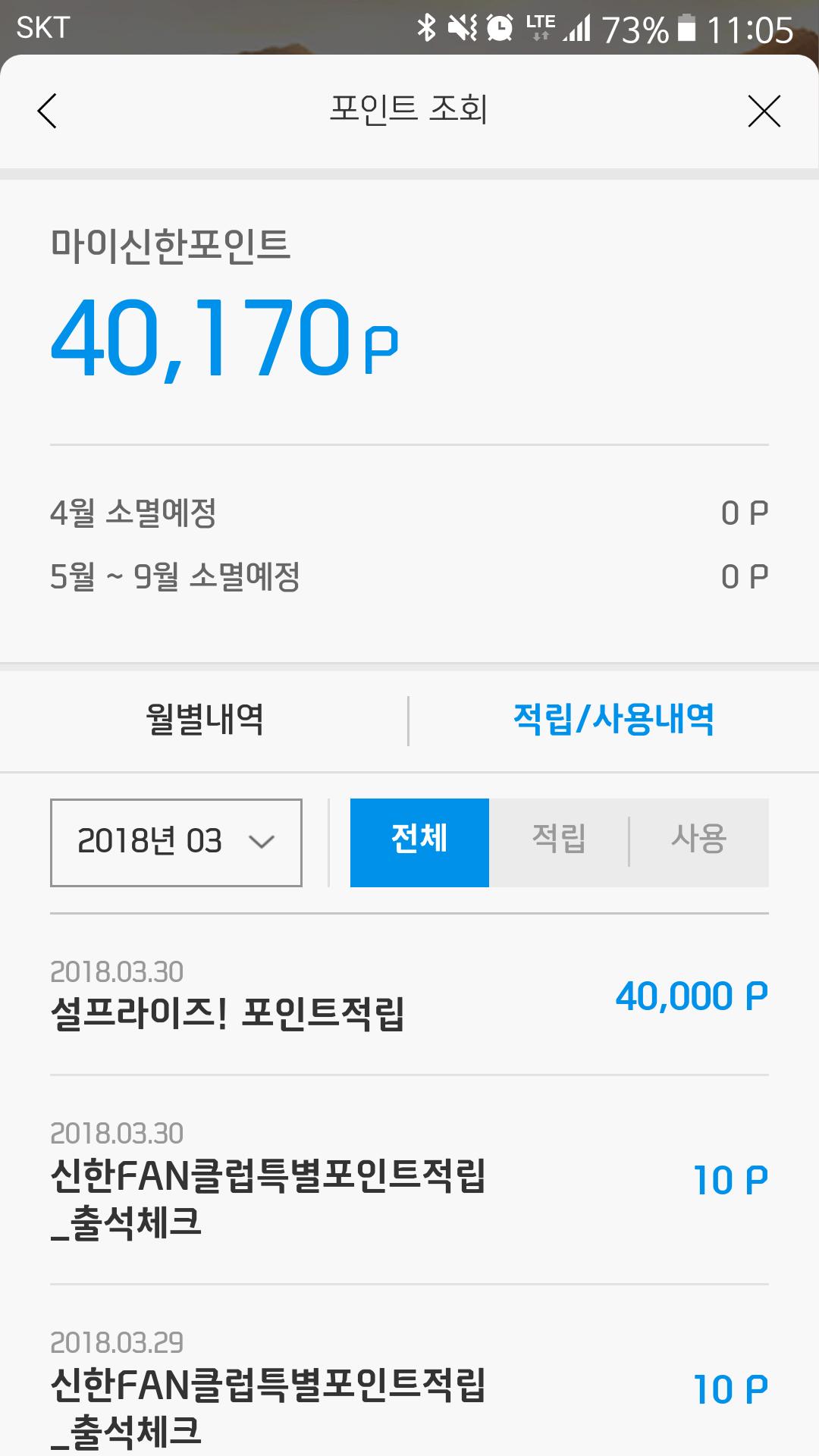 상품권 구매 포인트네요. 어제 적립된 것이 1월말부터 2월중순까지 진행했던 이벤트입니다. |