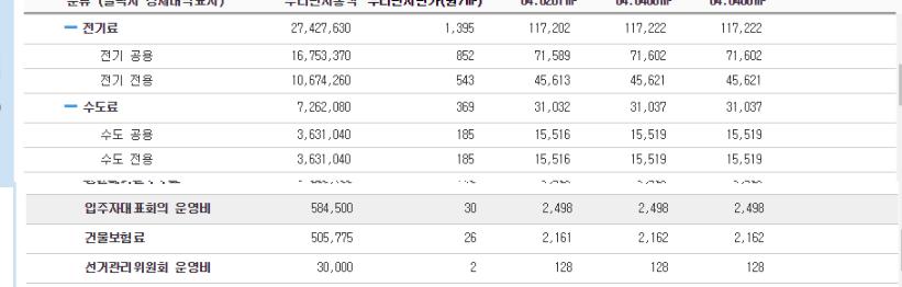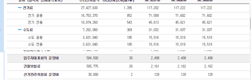 아니 공용전기세, 물세, 건물 보험료 같은... 다 같이 내는거는 공용으로 포함 해놔야 보기 쉬울것 아닙니까 ㅠㅠㅠ