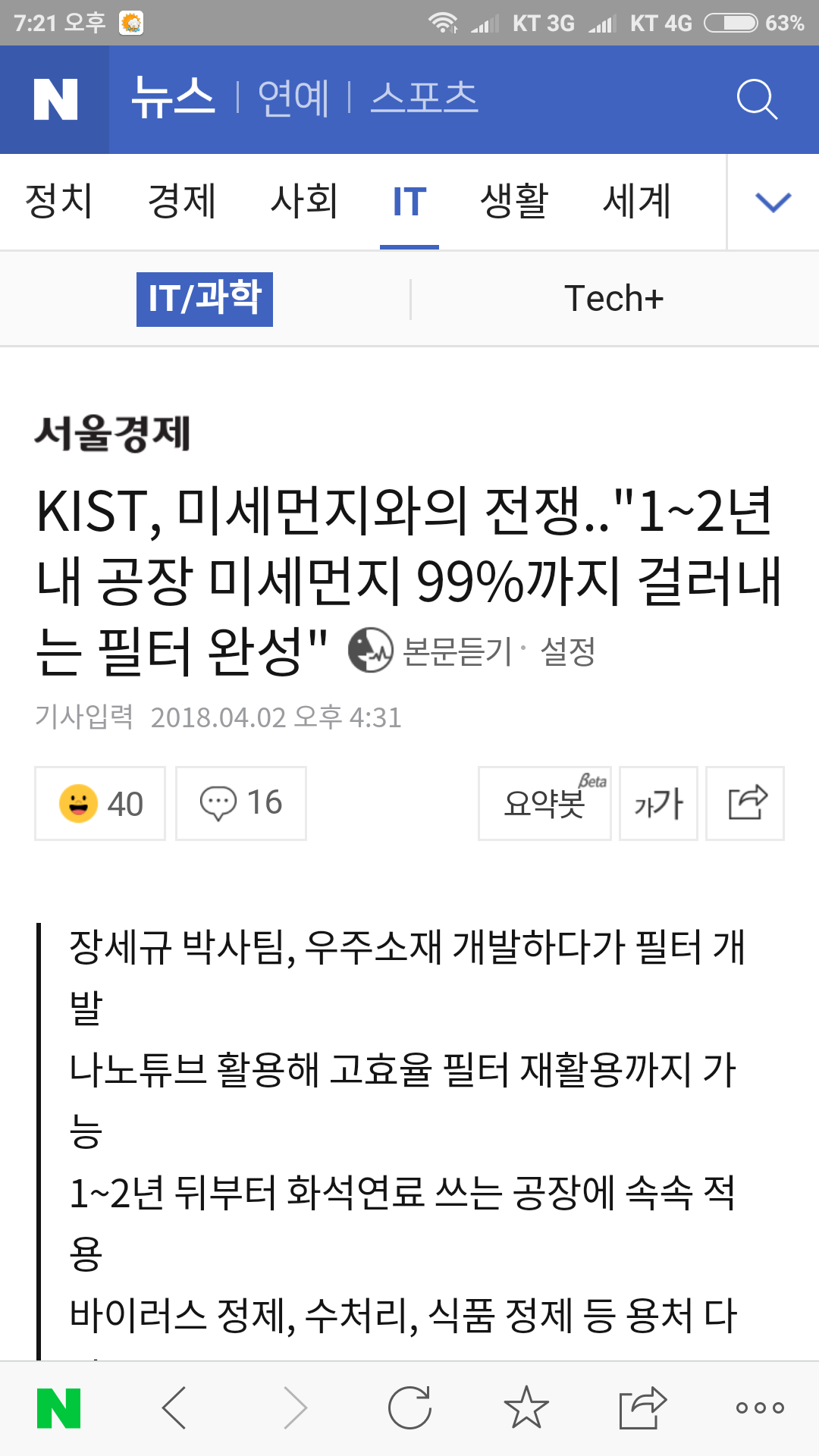 이 기술이 상용화되면 미세먼지 걱정이 크게 줄어들거 같아요ㅎ |