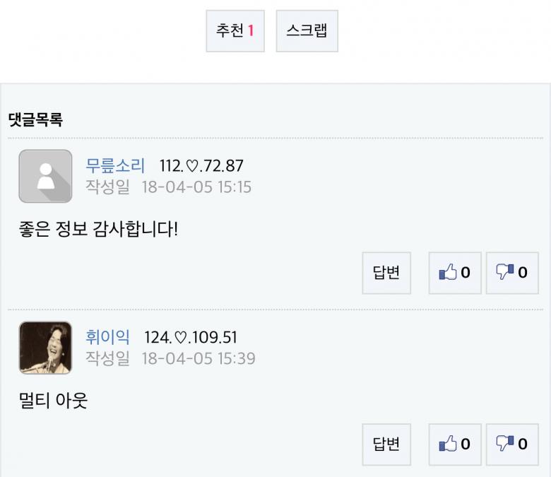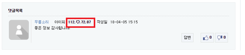 댓글에 글쓴이와 아이피가 같으면 굵게 표시돼요=멀티 아이디