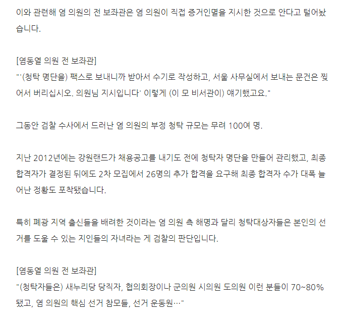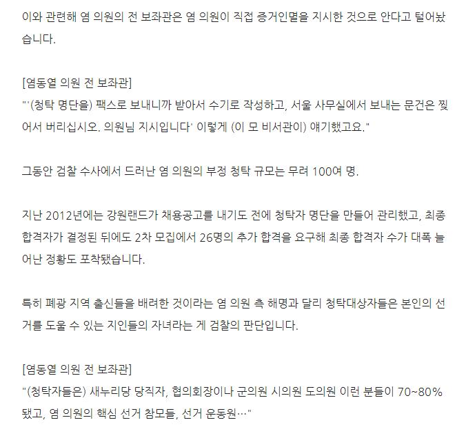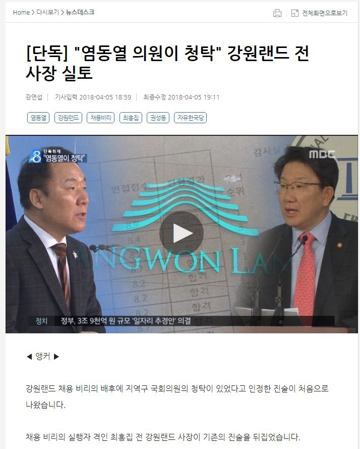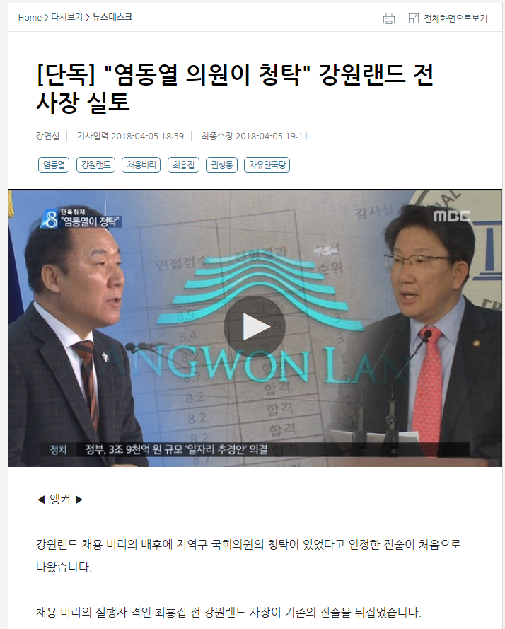 [단독] "염동열 의원이 청탁" 강원랜드 전 사장 실토 > 자유게시판
