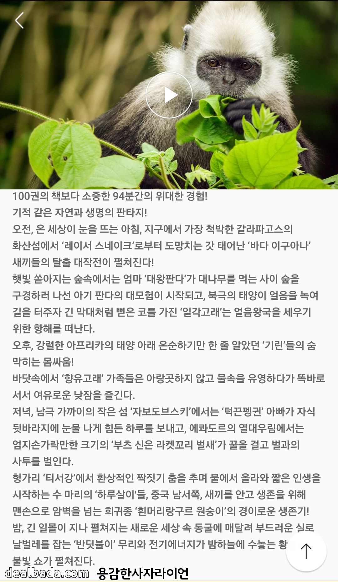 자이언트판다, 기린, 향유고래, 일각고래, 부츠신은라켓꼬리벌새, 턱끈펭귄 등등 다양한 동물들의 신비한 장면들이 많이 나오니 재밌게 보세요~