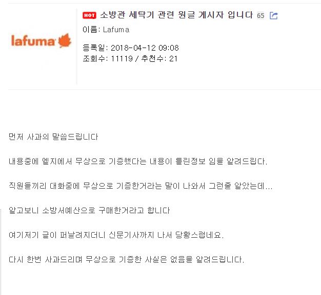 LG제품 AS에 학을 뗀입장에서 기부는 절대 없을거라 생각합니다 | ||