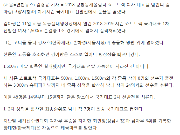 하필 어제 영재발굴단에 나온 김아랑 선수를 봐서 그런지 마음이 아프네요 ㅠㅠ |