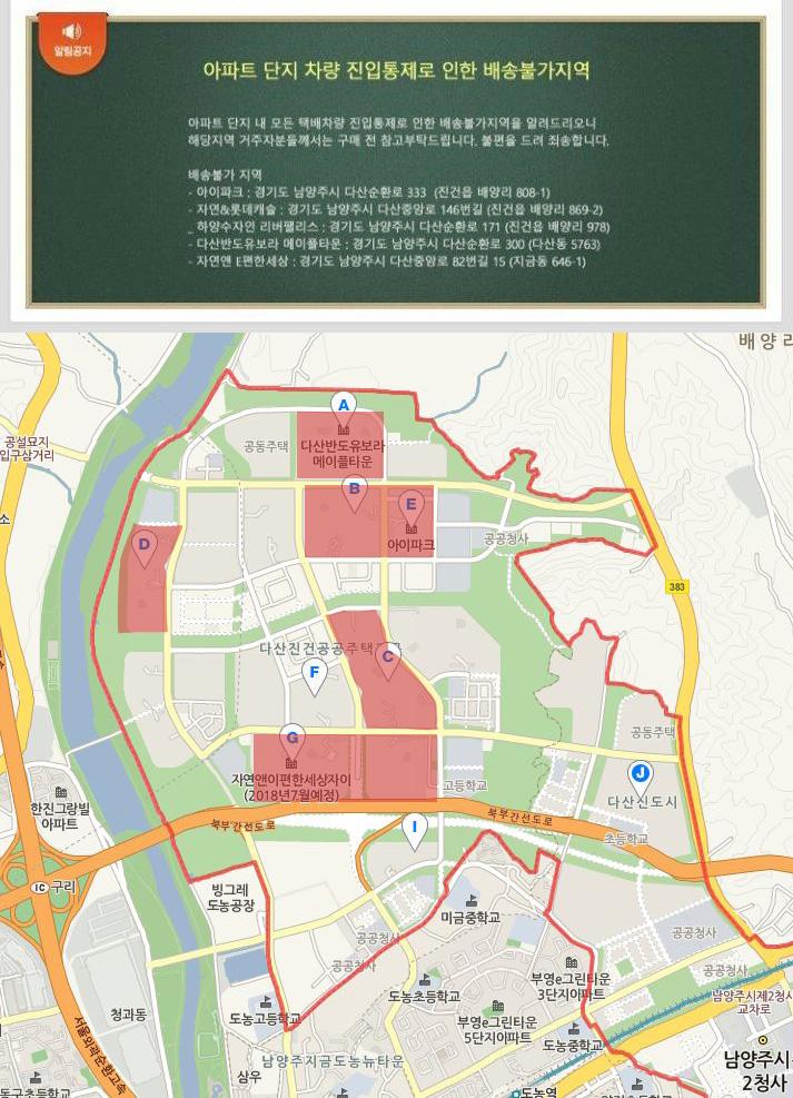 다산 신도시 관련해서 택배가 안되는 지역이 꽤 보이길래..