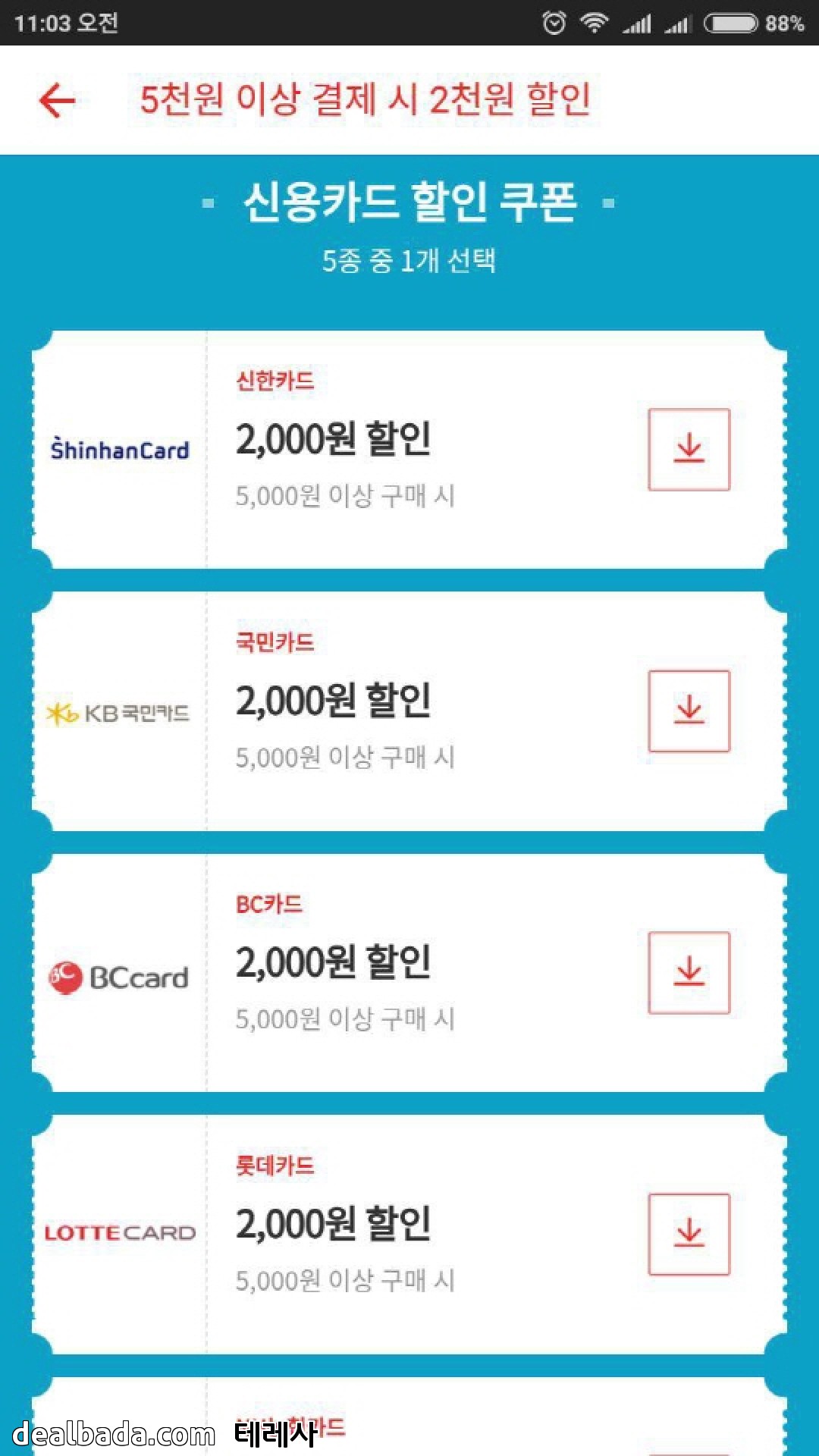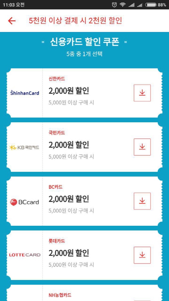 신한 / 국민 / 롯데 / 농협 / 비씨