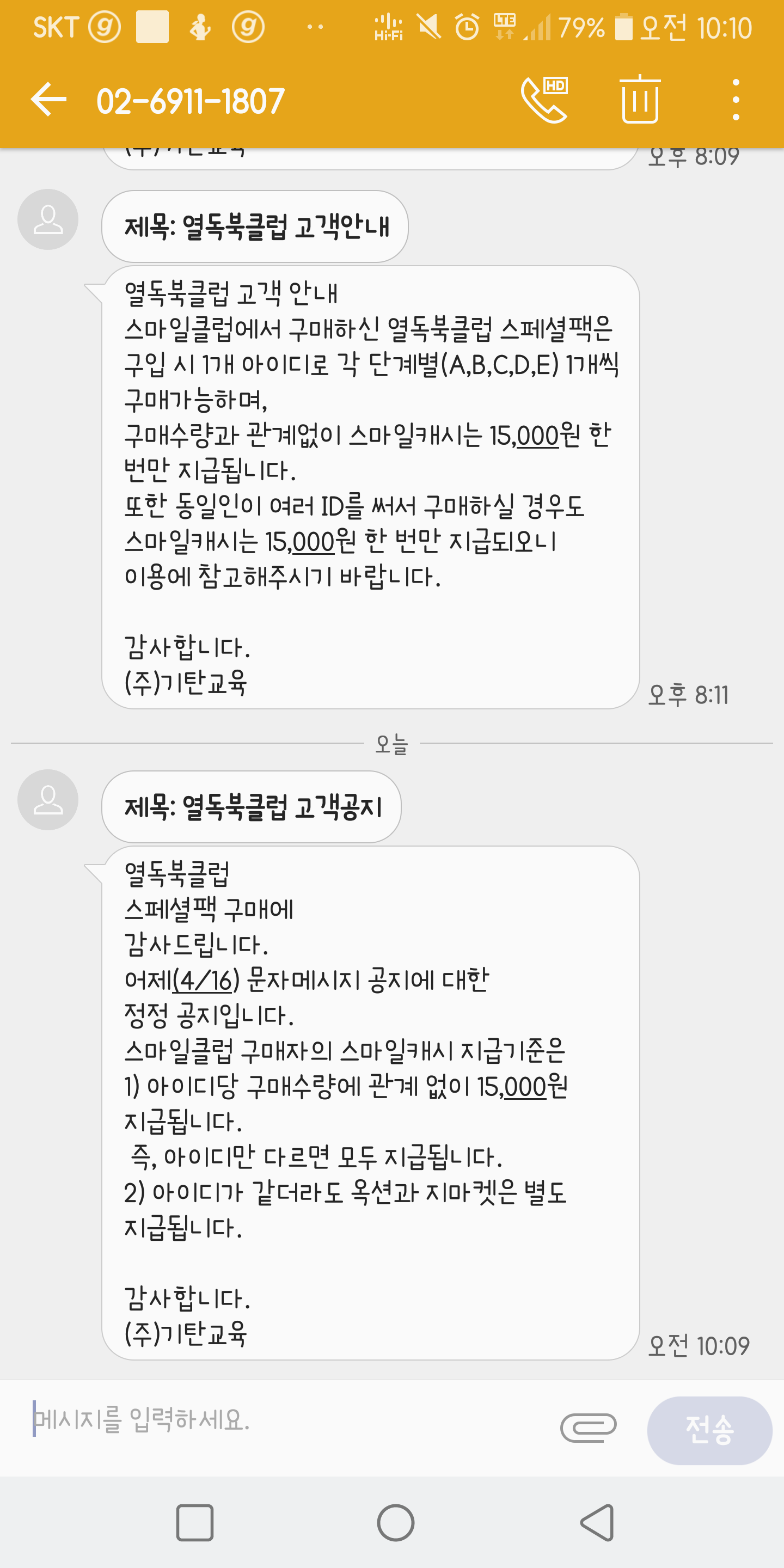 문의가 많아서 따로 문자보내주나보네요