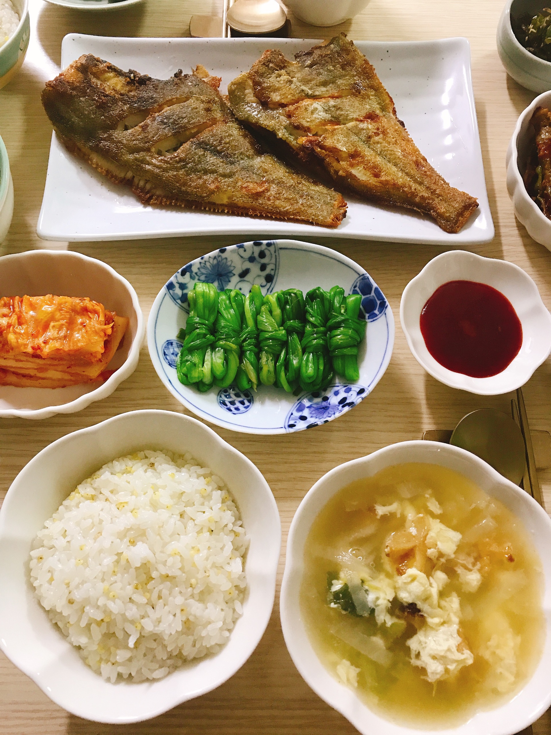 입맛이 없어 저녁 굶었는데 가자미구이 보니 갑자기 급허기지네요.ㅎㅎ