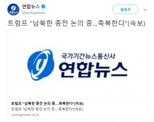 와 대박이네요... 실검에 종전이라 되어 있어서 뭔가 했더니 우리나라 이야기였을 줄이야 | ||