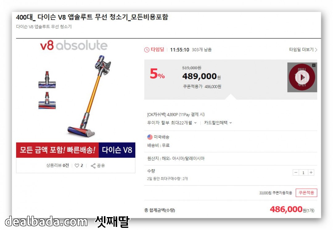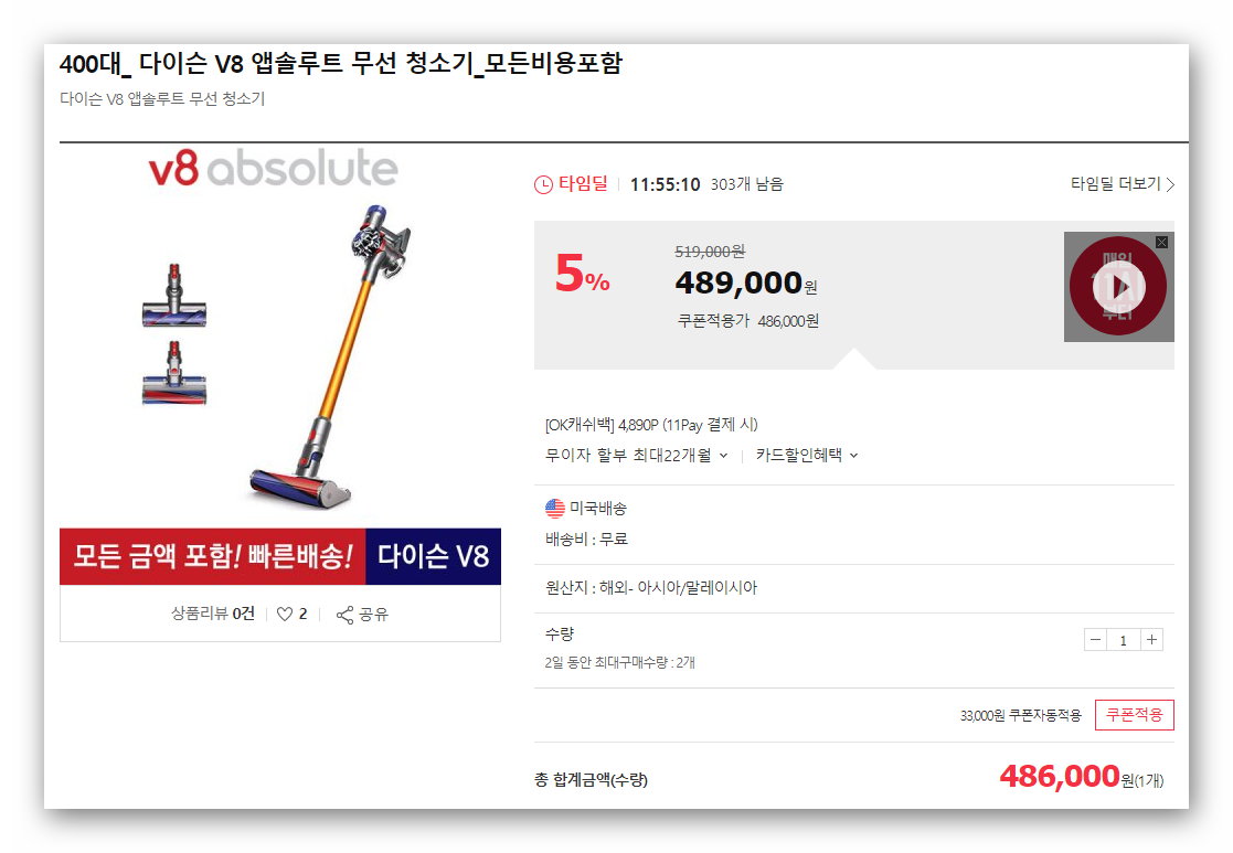 (품절) 1번가 타임딜에 v8 앱솔올라왔군요