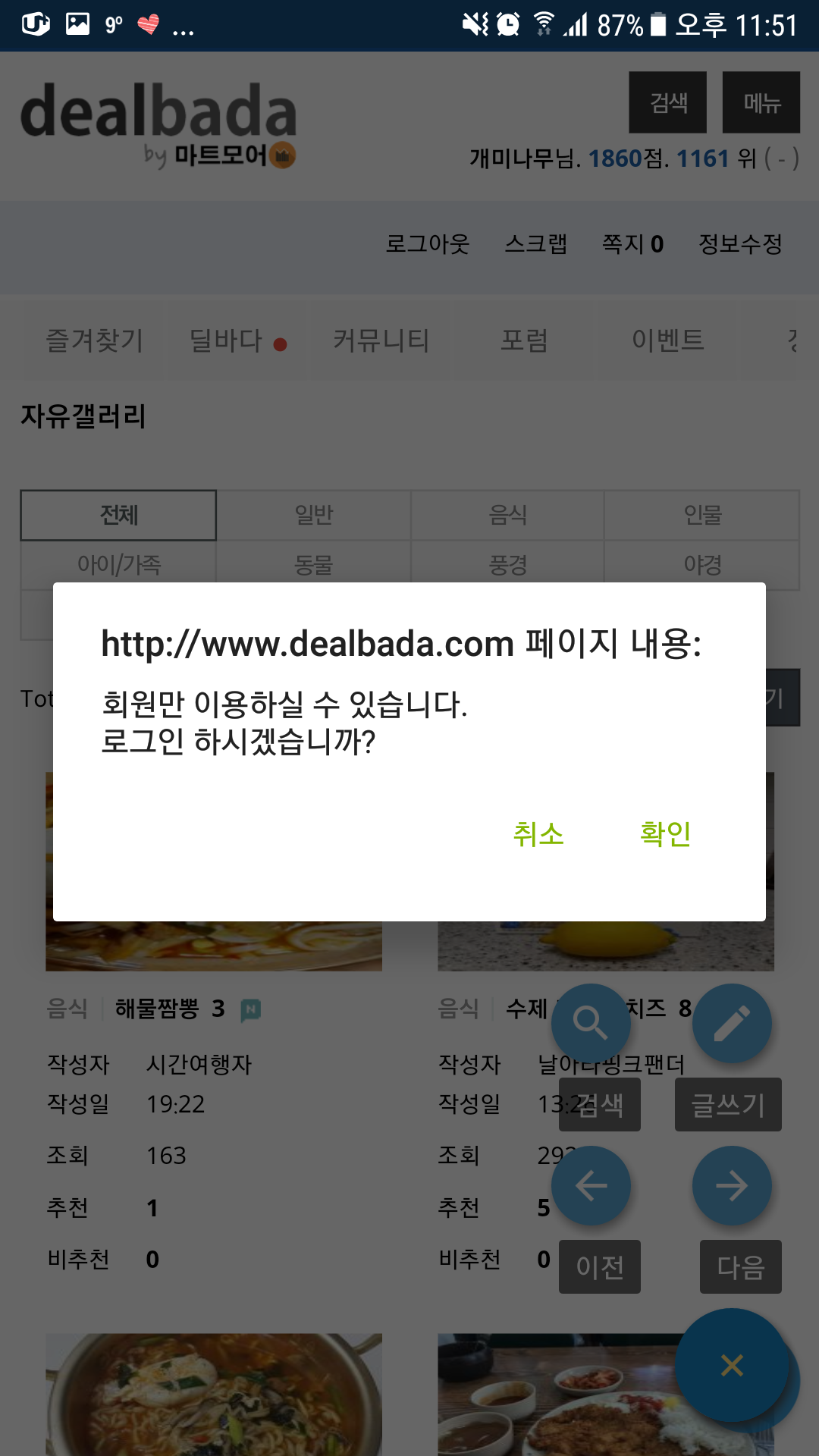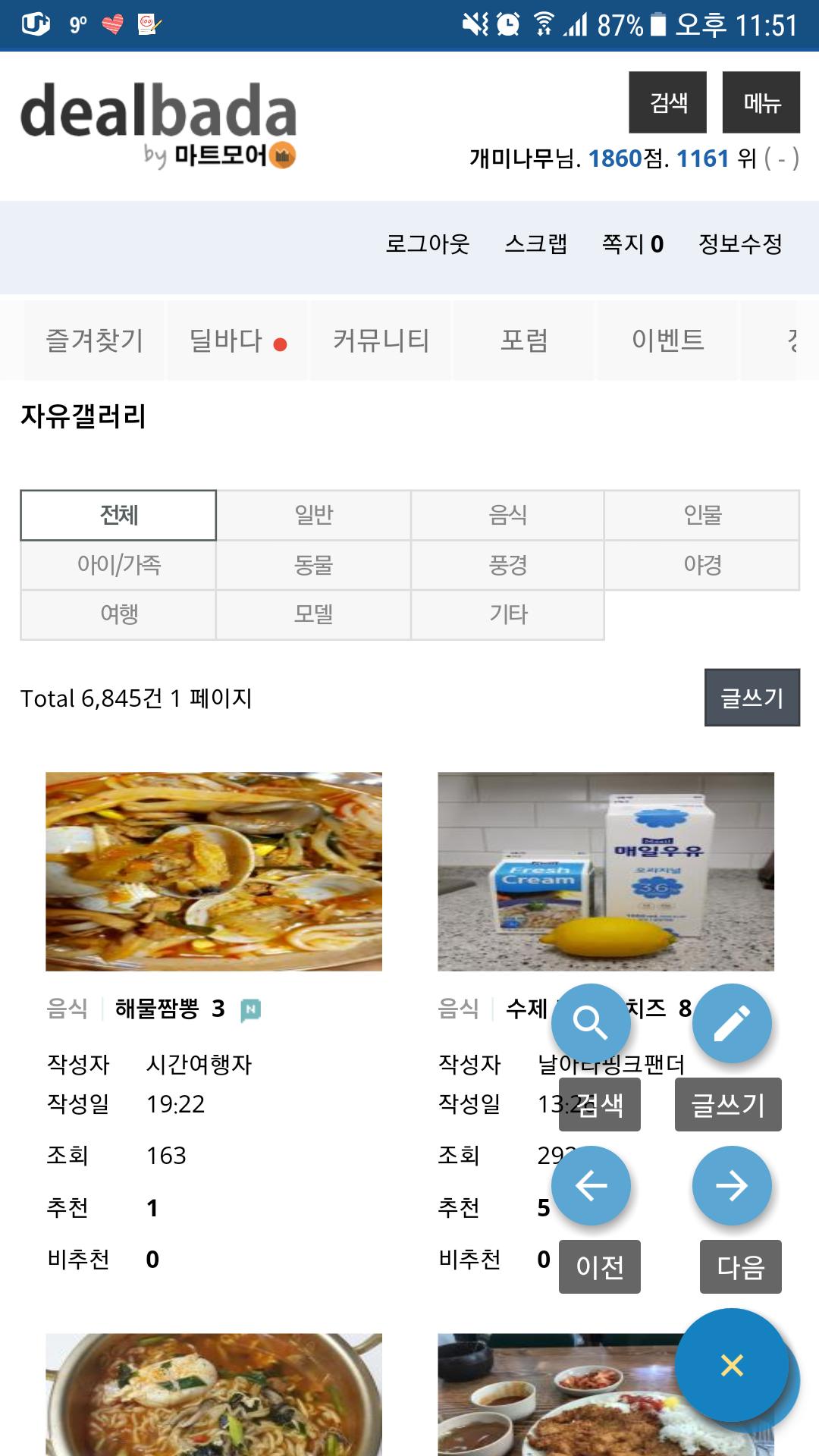 안드로이드 핸드폰이고 자유게시판이나 포럼 이런데에서는 누르면 글쓰기로 제대로 가집니다!