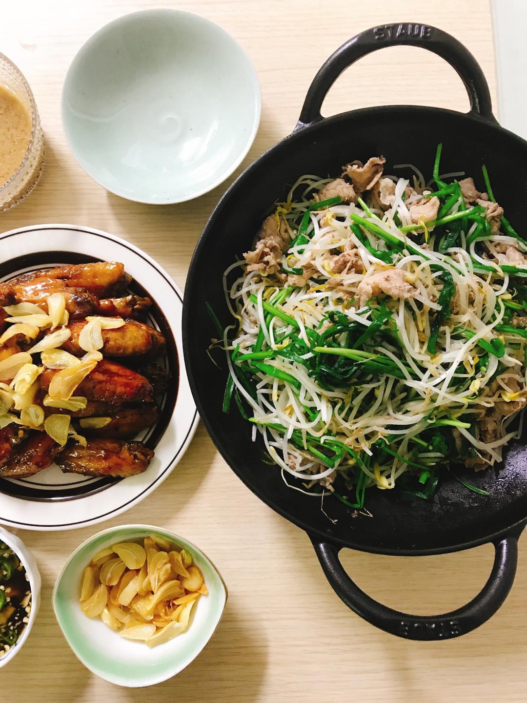 우와아아~~ 잔칫날도 아닌데 차돌숙주찜, 유린기, 닭날개데리야끼조림이 왜 한 상에 차려져있나요?
