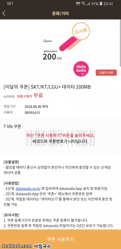 저는 데이터 무제한 요금제 사용중이라 필요가 없습니다.