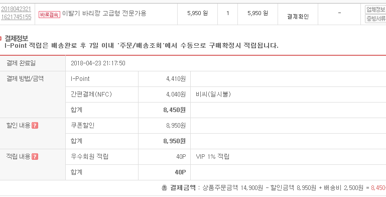 적립금 4000원가량 사진후기남길때마다 받아서 적립해놓은거 털고하니 한 4000원주고 바리깡 득템했네요