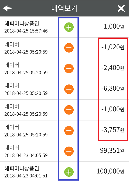 네이버 환불하고 음수 금액이 주루룩 생겨서 뭐지? 했었습니다.