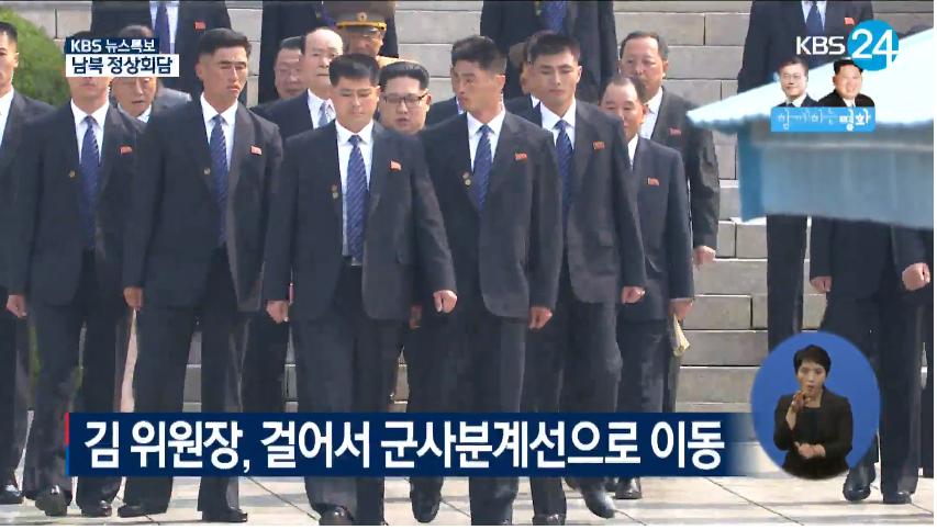 경호원에 둘러싸여 걸어오네요~