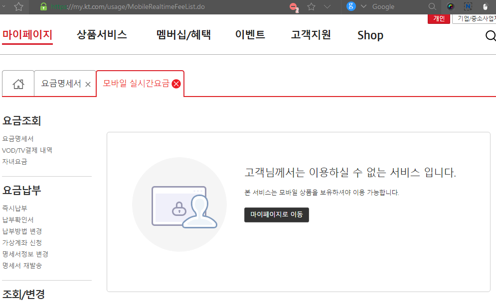 타사 고객이라 요금 조회가 안 되고 있다고 합니다.