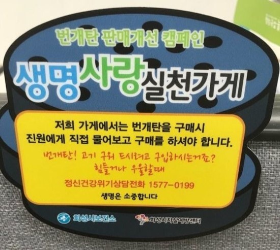 5. 화성시의 ‘번개탄’ 실험판매 → 번개탄 이용한 자살자 줄이기 위해 숨겨놓고 팔고 팔때 용도 물으니 실험 대상 읍 매년 3~4명 번개탄 자살 시도자 작년엔 ‘0’명. 정부도 관심.(중앙)▼