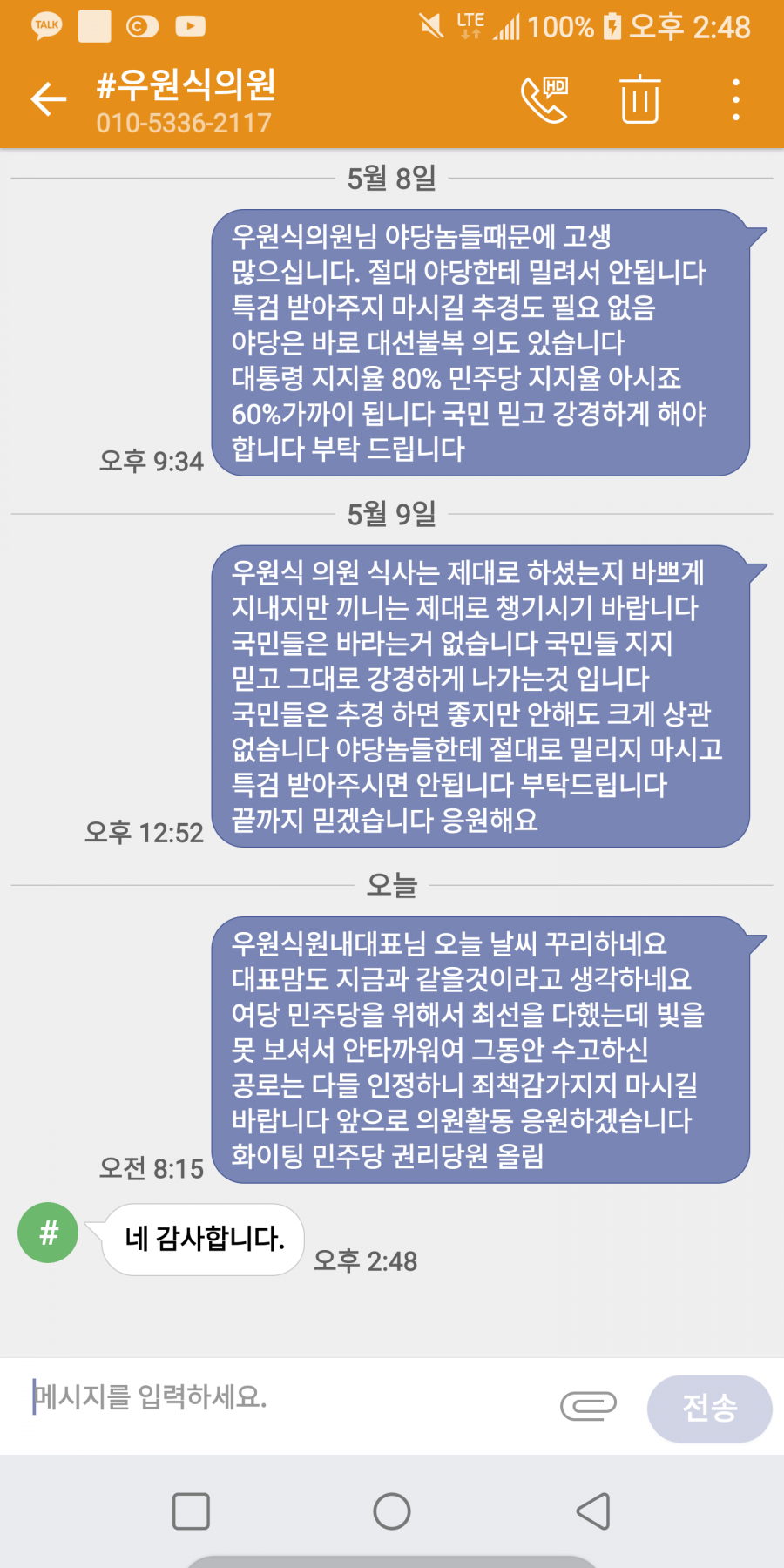 저렇게 정성들여 문자보냈으면 적어도 한두마디는 더 적어줄수있는거 아닌가싶네요.