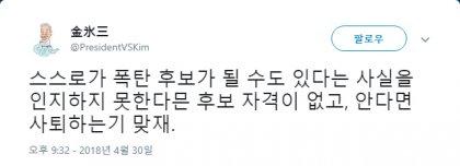 진작 잘렸어야할 인물이 현재 대통령과 경선 벌였다는 이유만으로 목숨팔이한걸 주제도 모르고 날뛰는 꼴이라뇨.