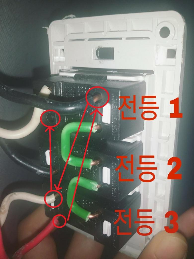 네 그리고 전등2,3 스위치 안맞으면 검은색 순서 바꾸시면 될것 같습니다.