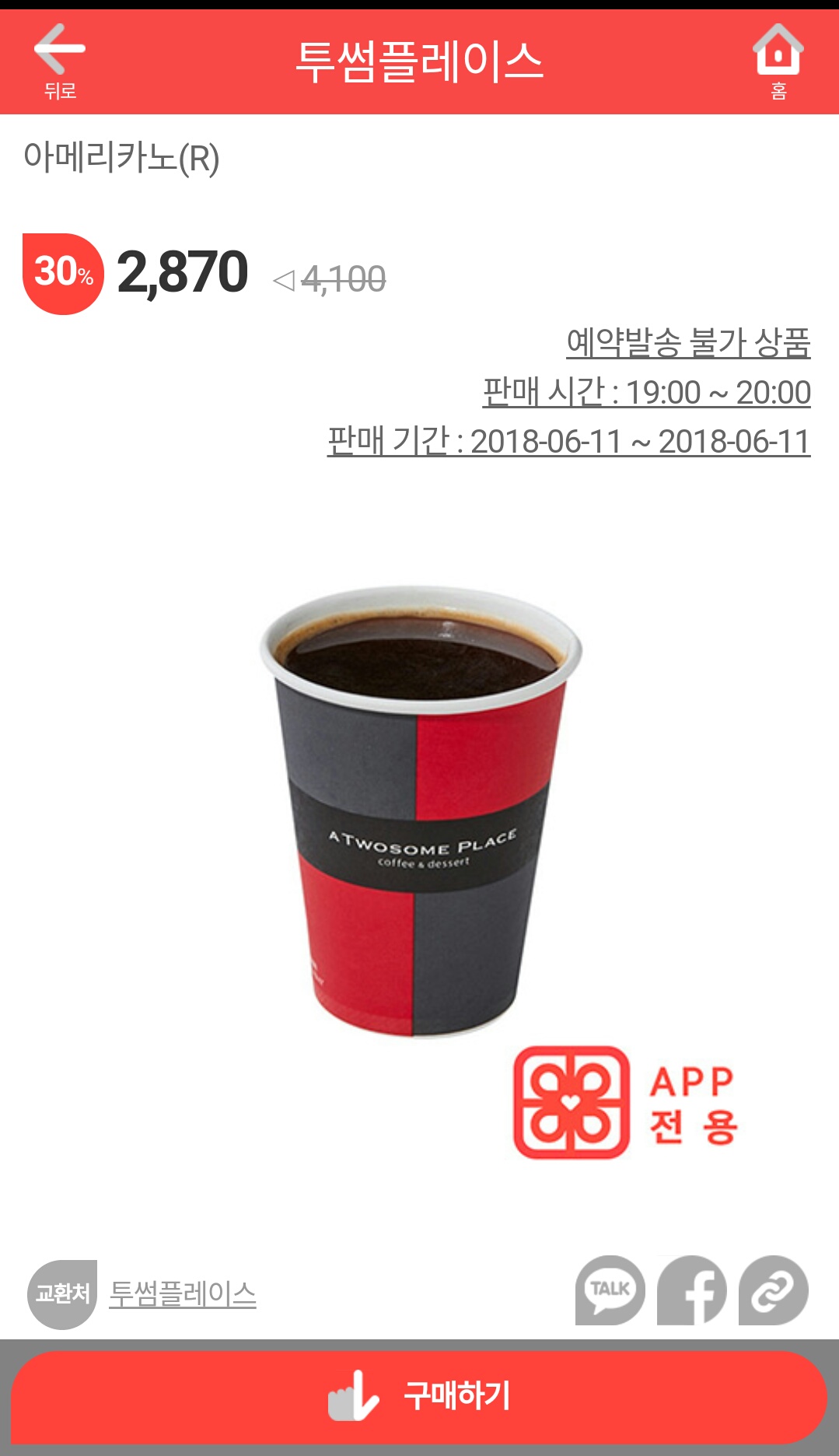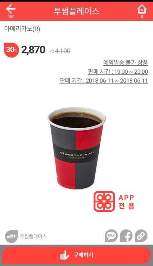투썸 아메리카노 2870원 입니다.