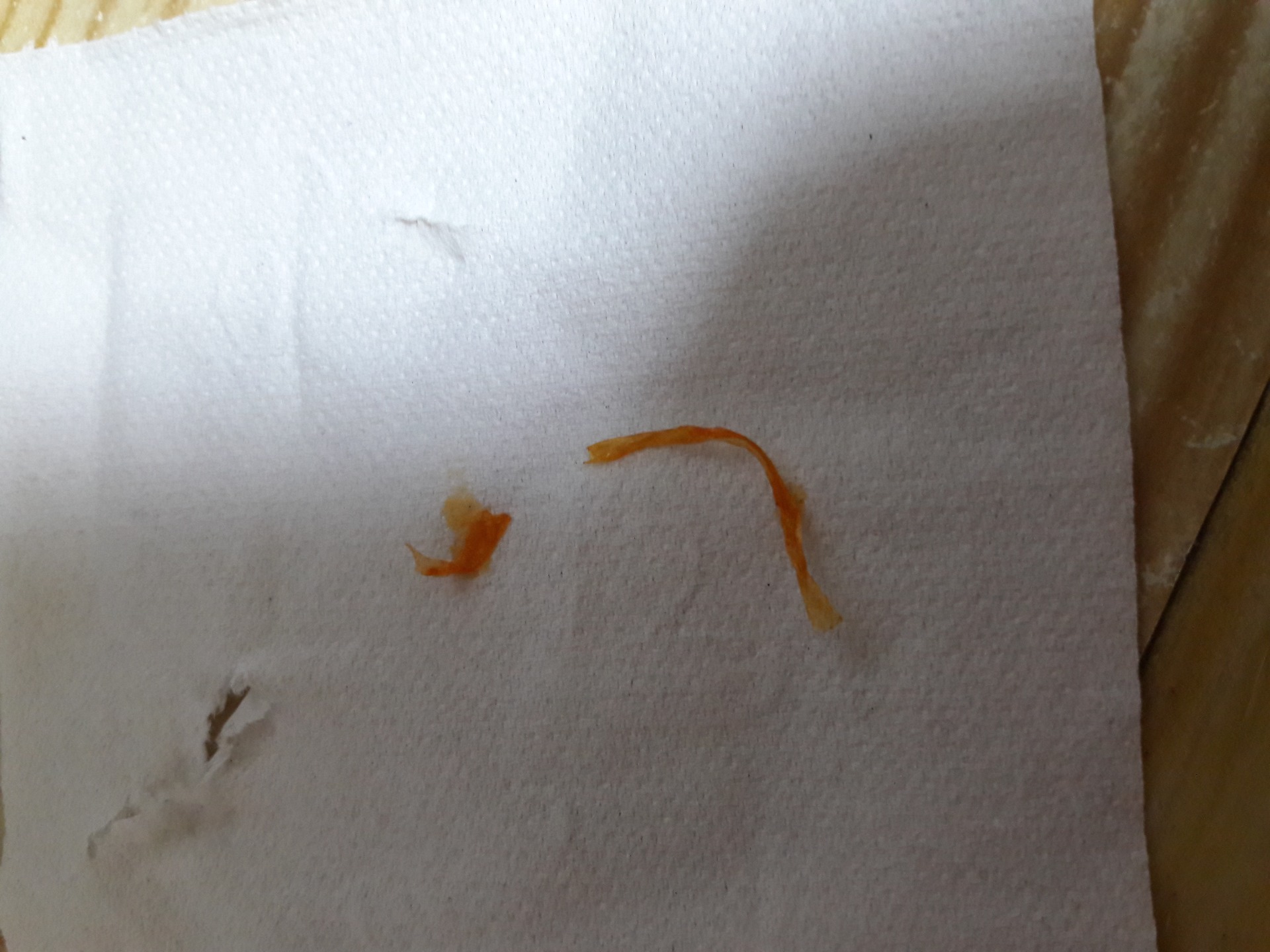 냉동된 생물을 싼 비닐봉지가 안으로 박혀서 얼어있는건 잘 안떨어지는데 뗄만큼 떼고 남아있는건 그대로 볶았나 보네요.. |