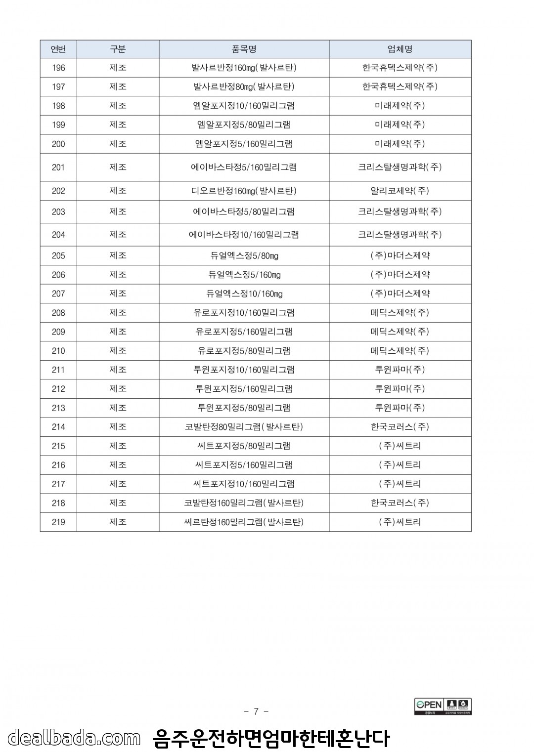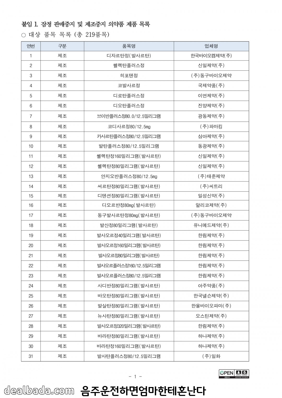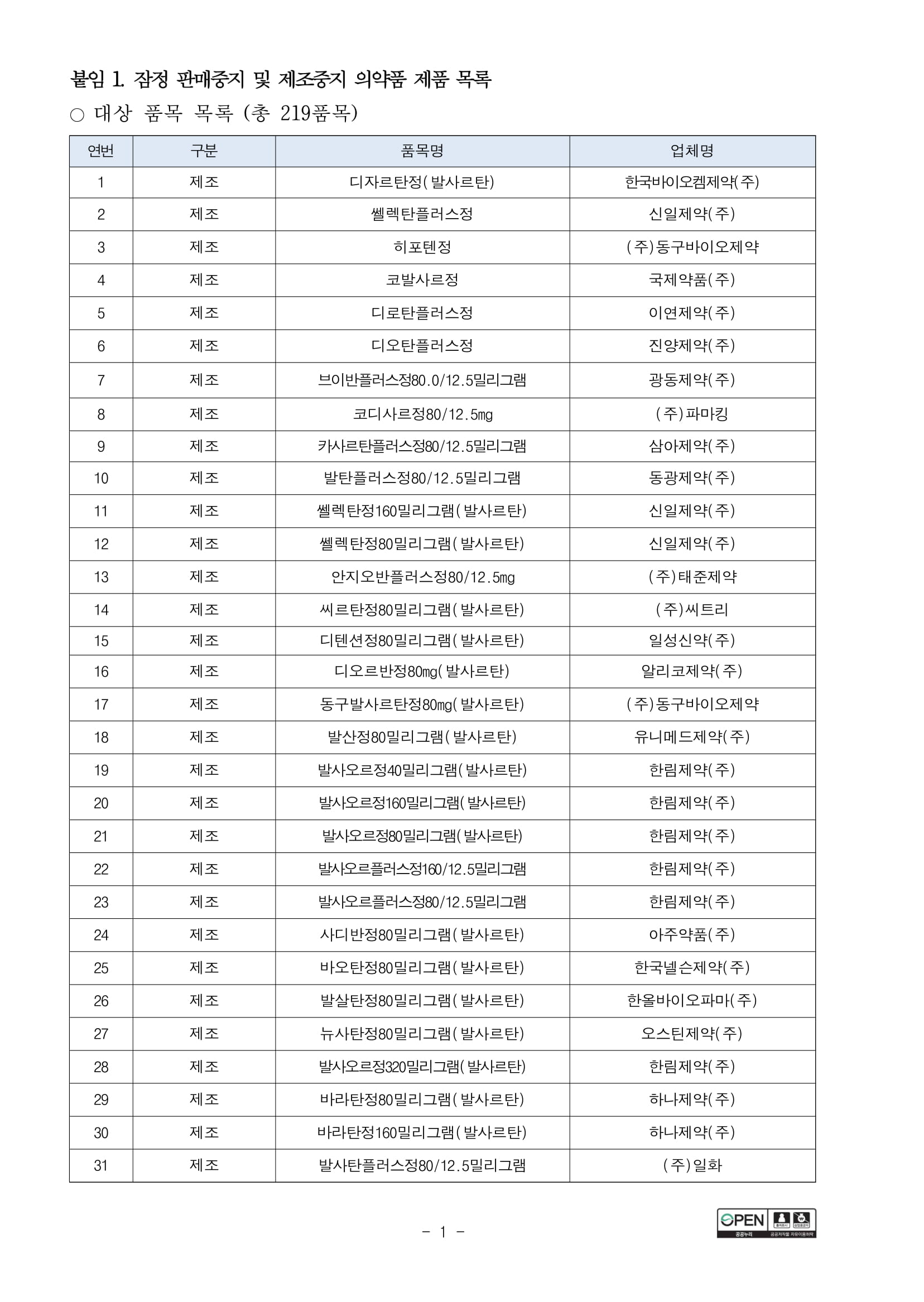 219종 모두 발사르탄 원료로 만든 혈압약이니