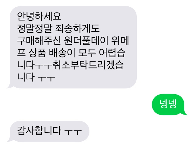위메프 문자받고 취소하고 왔어요 > 자유게시판