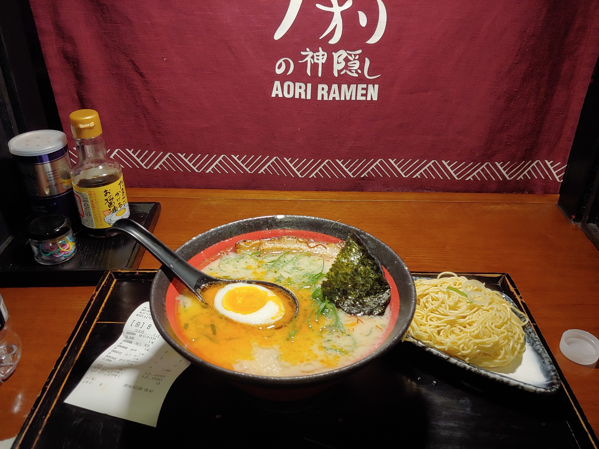 기본은 하는데.. 저 칸막이는 일본에서 저렴한 라멘집 베껴온거더군요.. 그래서 분위기도 고급라멘집은 아니었어요ㅋ