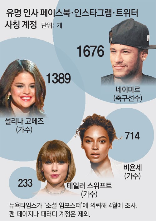 8. 해외 유명인 사칭 SNS 계정 주의 → 축구선수 네이마르의 경우 1767개의 가짜 계정, 비욘세는 717개... 유명 카톨릭 신부 이름 도용해 모금 빙자 돈 요구하기도...(동아)▼