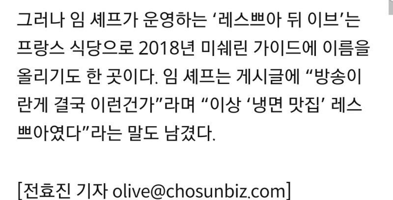 미슐랭가이드에 실린 프랑스 음식점을 냉면이라니