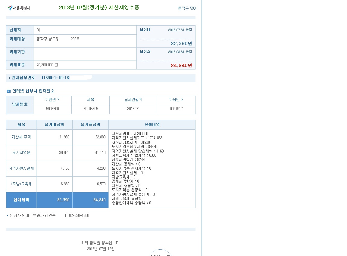 하지만....당연히 내야하는거니...처음내는 재산세 기분좋게 납부하고