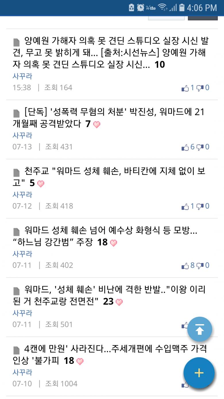 사꾸라님 올리시는 글 대부분이 메갈이니 미투가 어쩌니 하는 기사만 올리셔서,