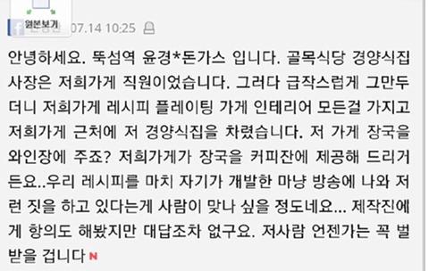 진짠지는 모르겠지만 여기 다른경양식집 레시피,인테리어,아이디어 배껴서 차린거라는 다른 가게 사장 제보도 있습니다.