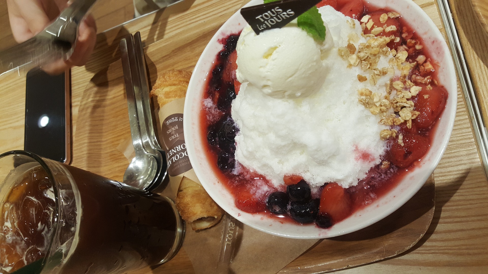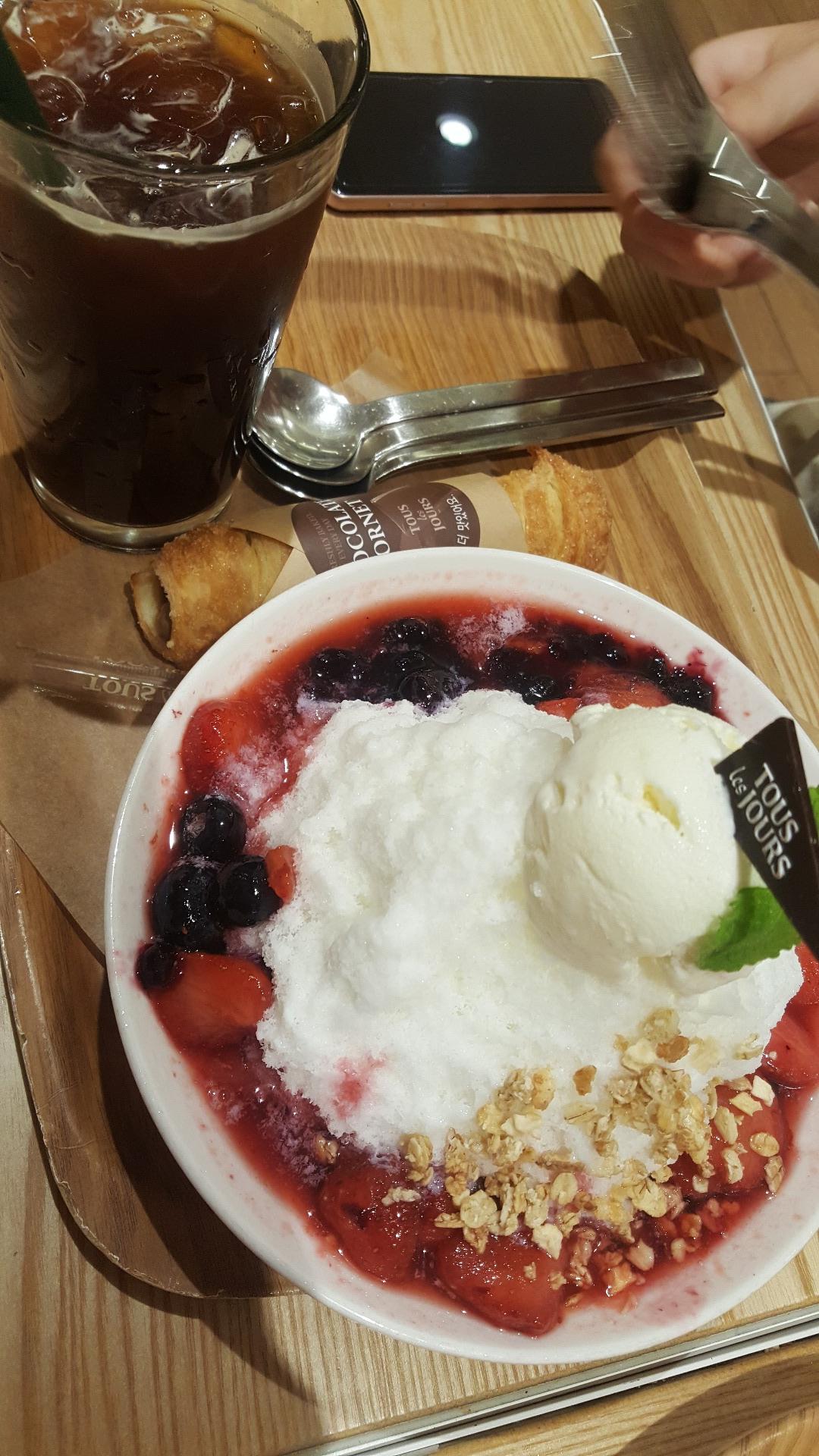 망고빙수 먹고싶었는데 어제부터 재료가 소진되었다고해서 베리베리빙수 먹었습니다.