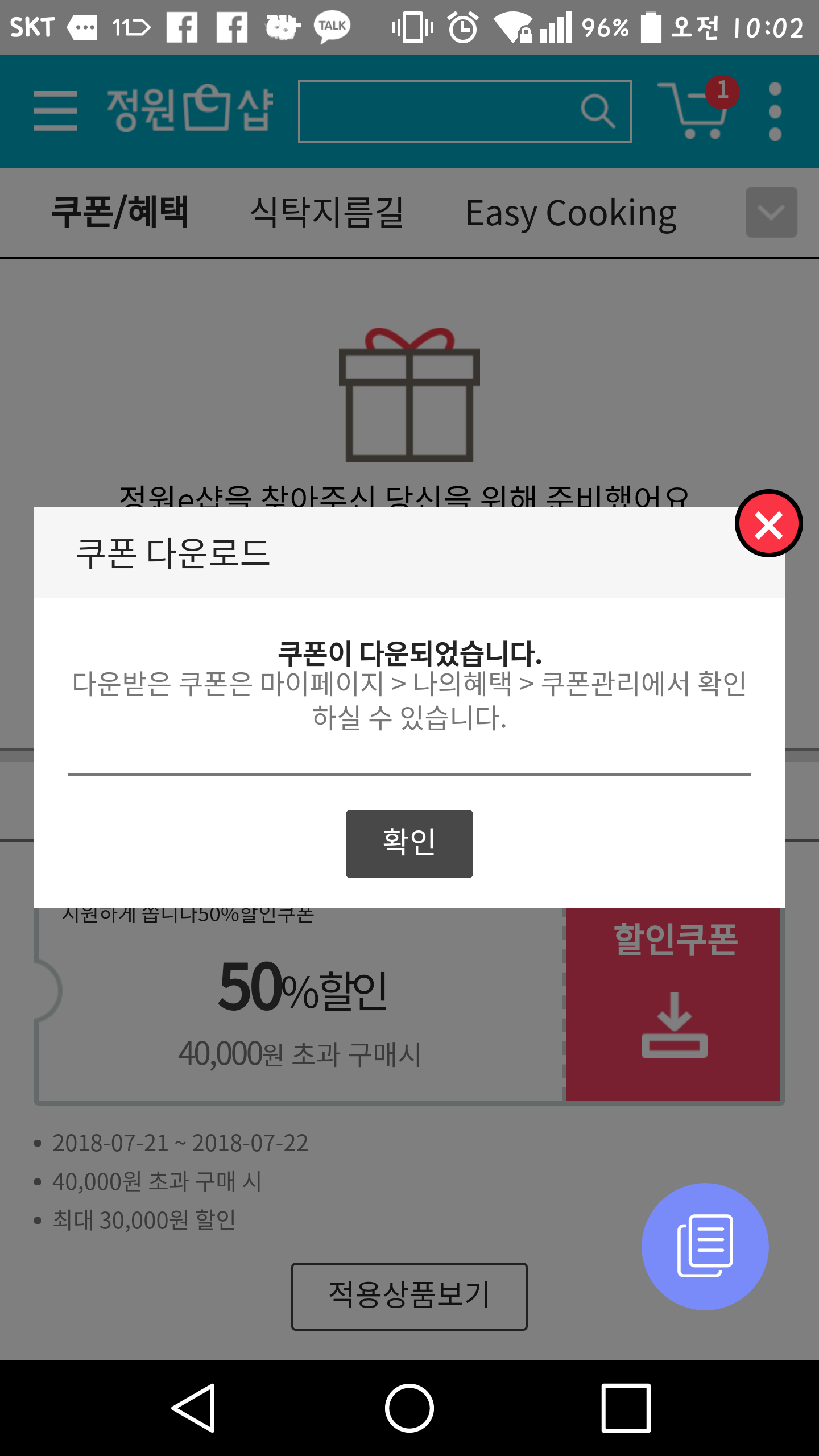 정원e샵 50% 쿠폰받으세요.