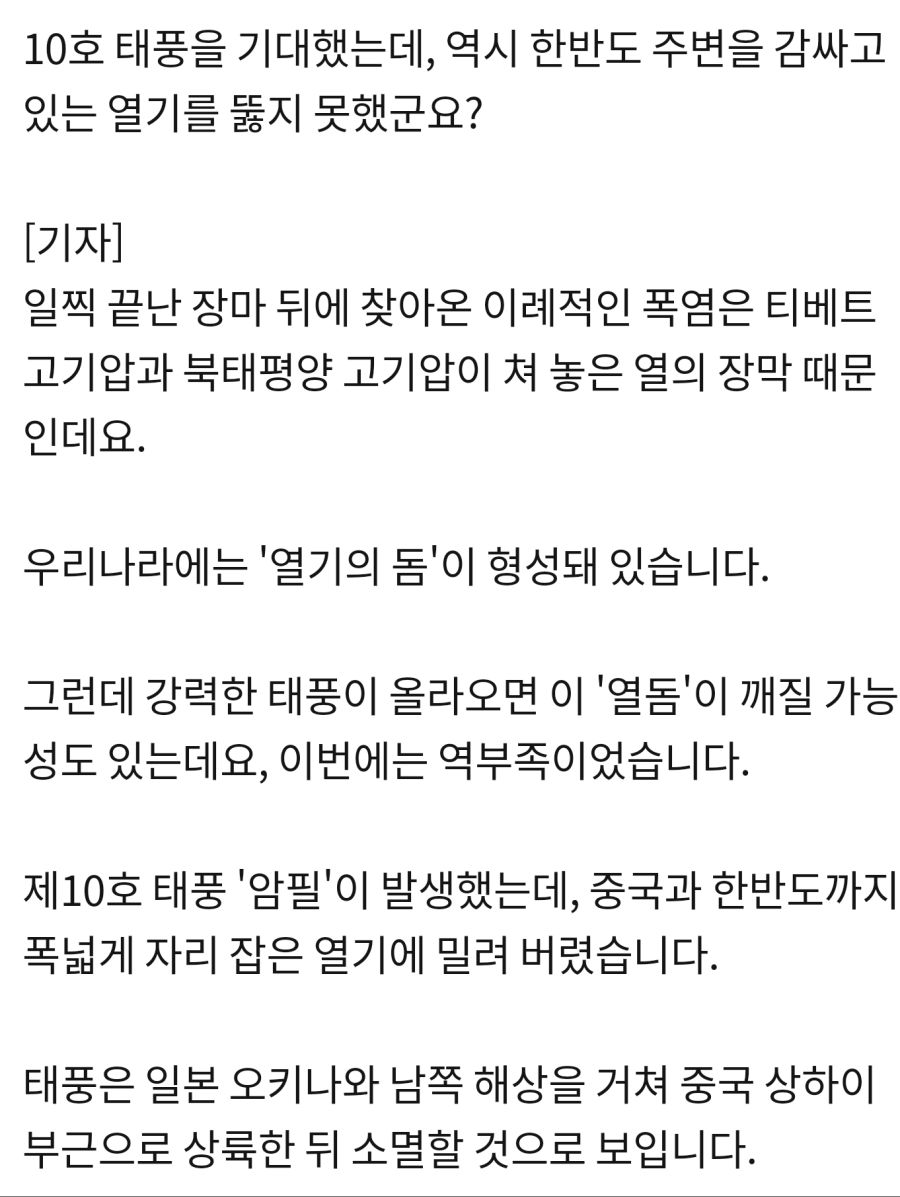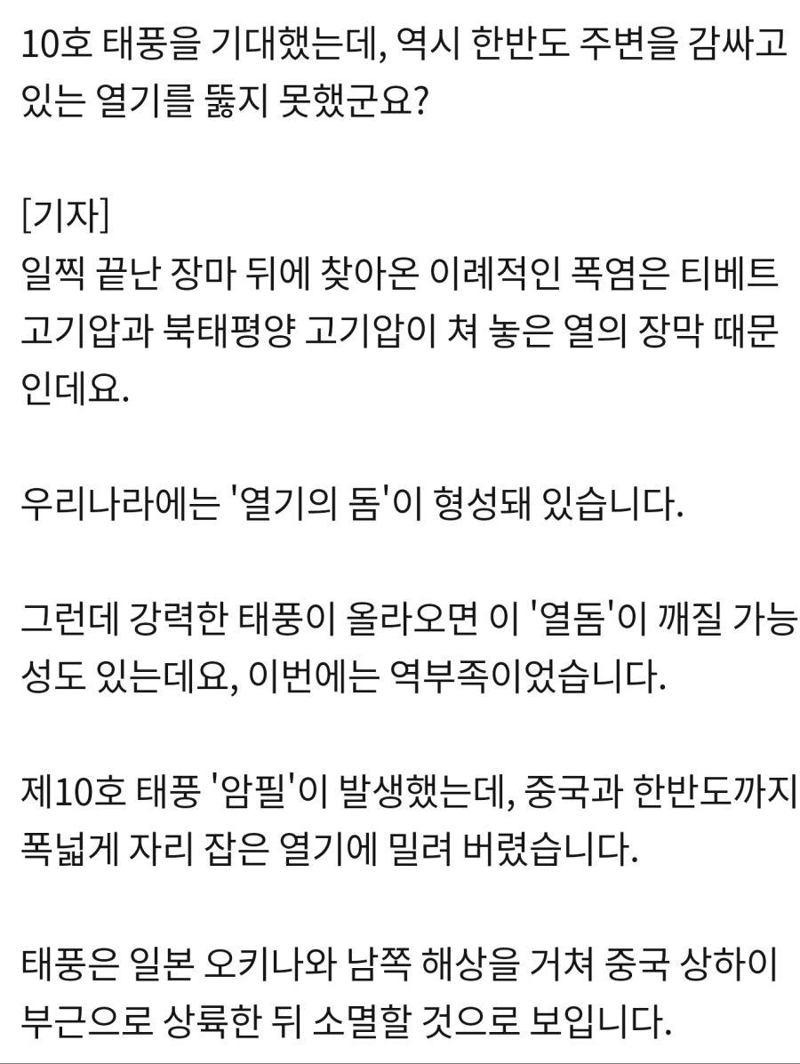 농사하시는 분들에겐 실례되는 말이지만...제발 태풍와서 고기압 좀 밀어냈으면 좋겠네요;; |