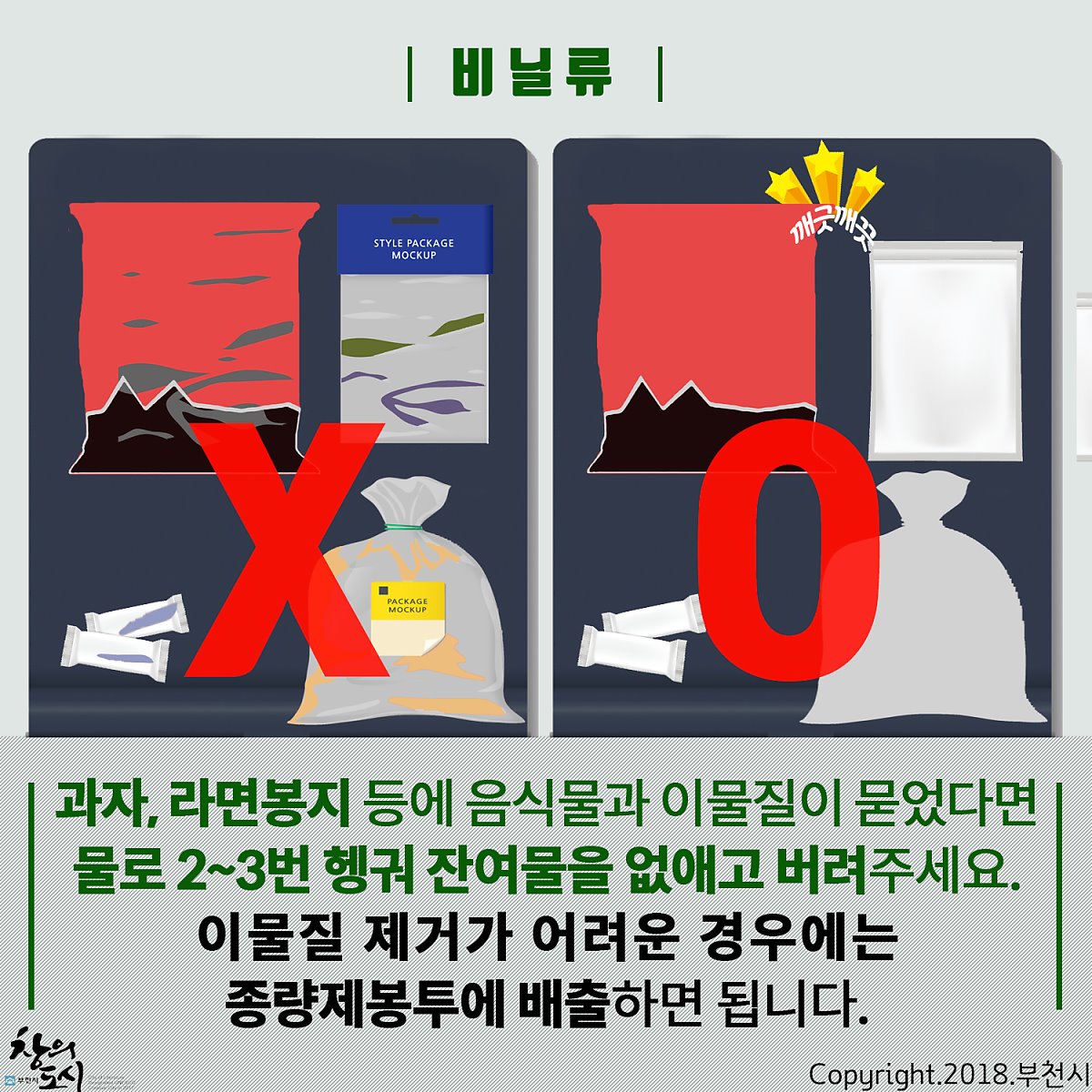 오염된 것들은 재활용이 안되서 종량제로 버려야하기에 요즘엔 중국집 플라스틱 용기, 페트병, 비닐등을 세척 가능하면 세척해서 분리배출합니다.