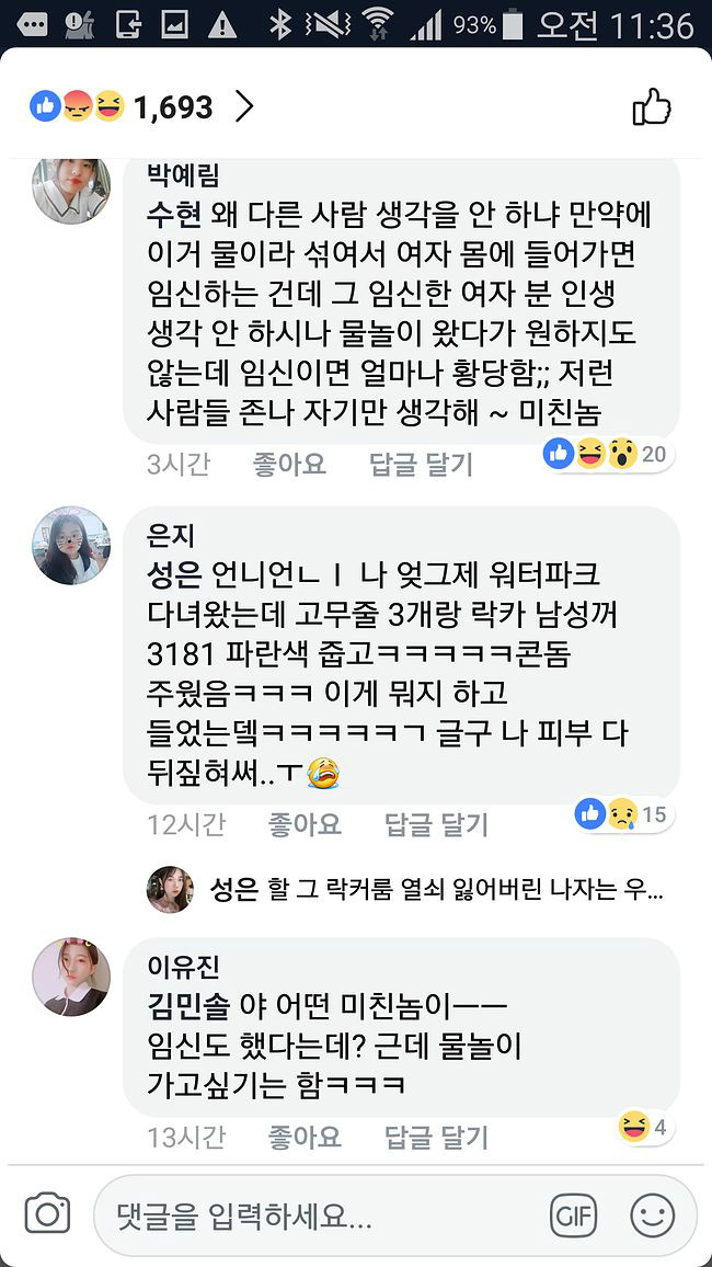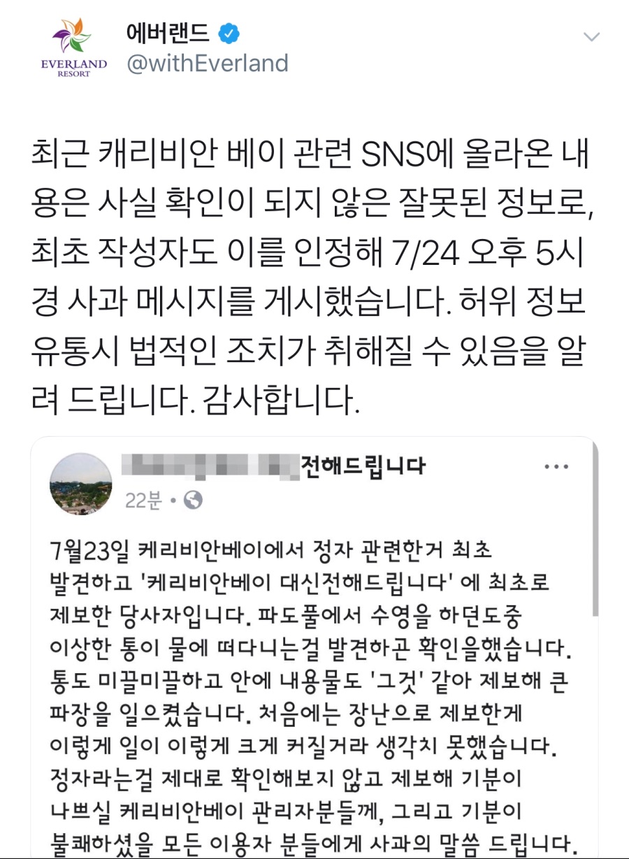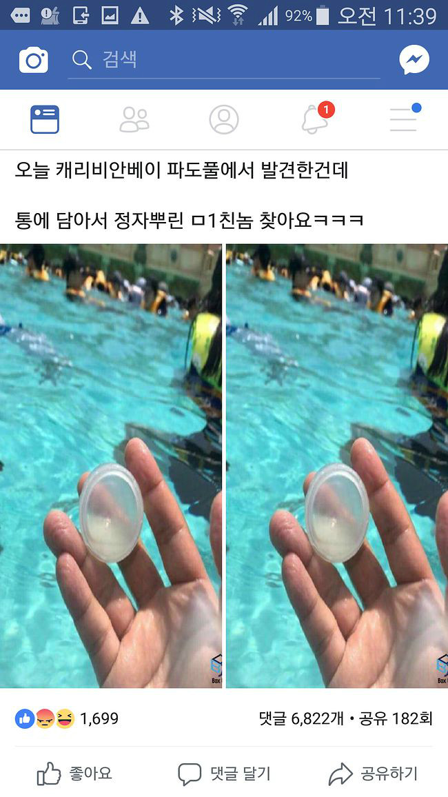 캐러비안 베이에 정액을 살포하는 통이 있다고 SNS에 누군가 글을 올림.