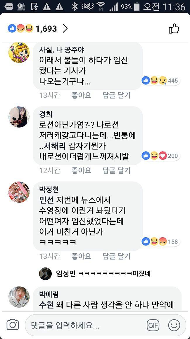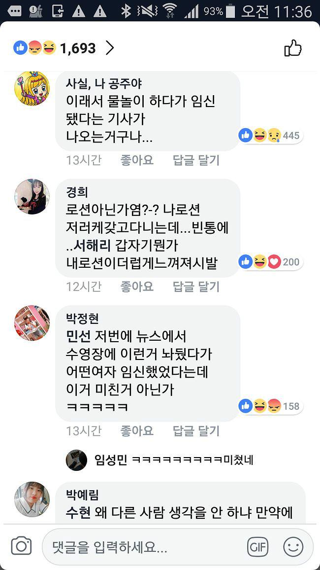 보통은 로션이 먼저 떠오르지 않나; 그리고 정액 임신 괴담 믿는 사람이 정말 있구나 |
