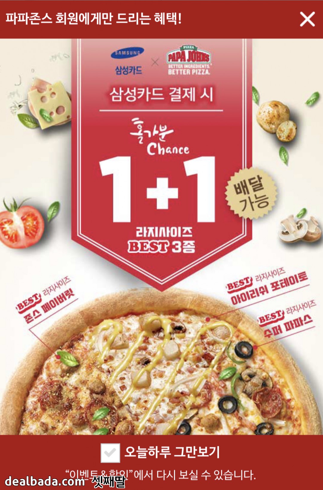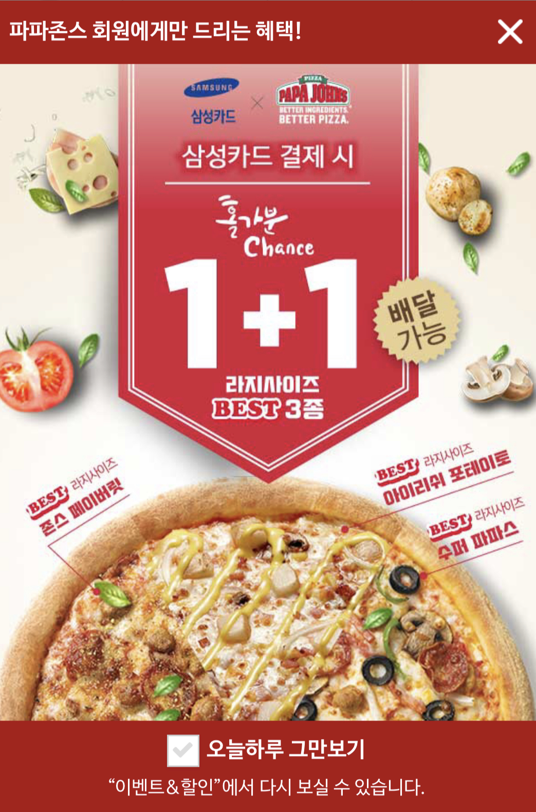 파파존스, 오늘 삼성카드로 결제시 1+1되는군요 > 자유게시판