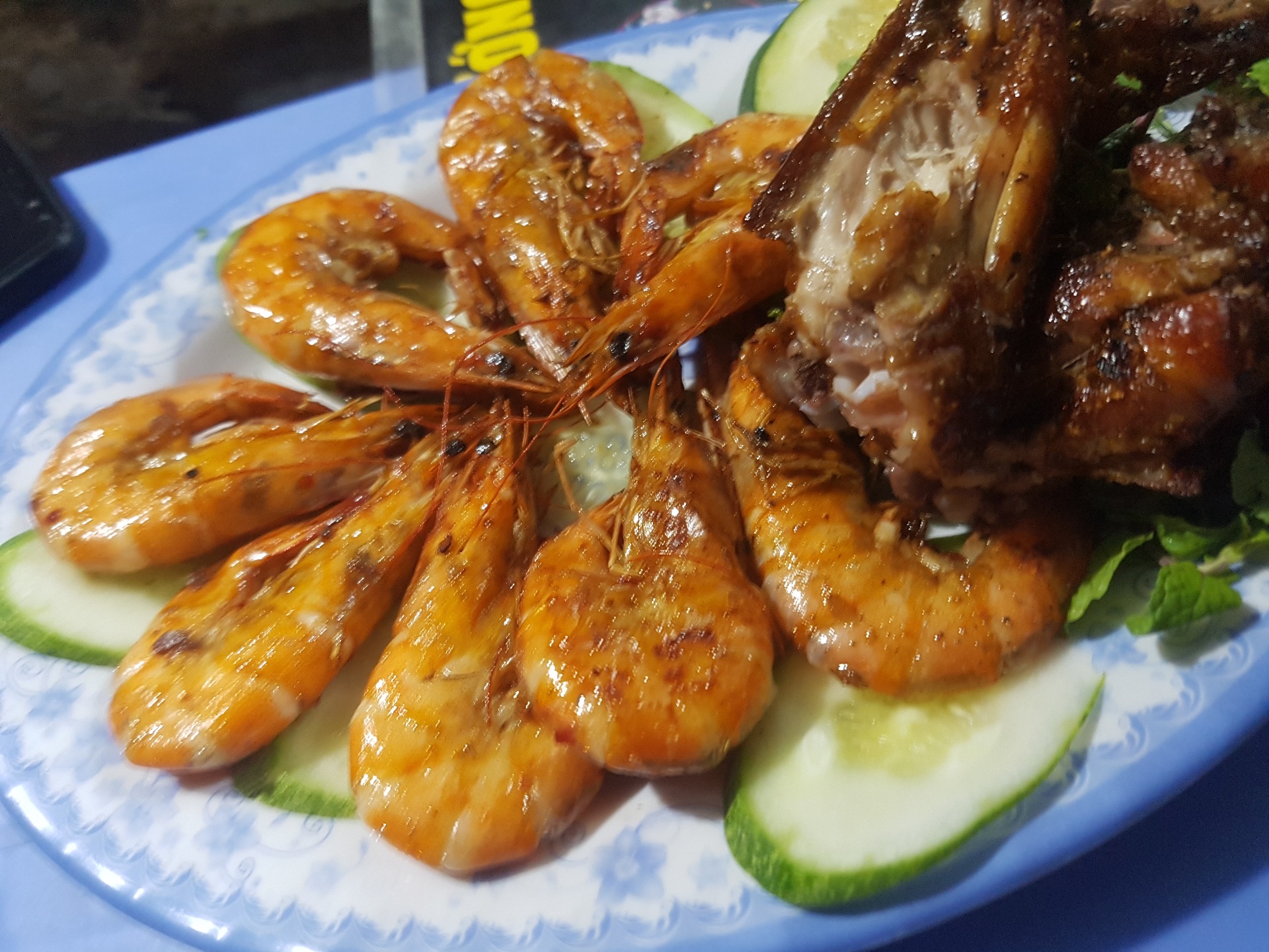 맥주가 한캔 500원에 돼지갈비 구이한판에 3000원, 새우구이 한판도 3000원. 국수나 반미(바게트 샌드위치) 는 대략 1000~1500원.