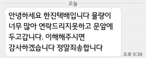 물량이 많아서 연락을 못주고 문앞에 놓고 갔다는 문자네요....ㅜ