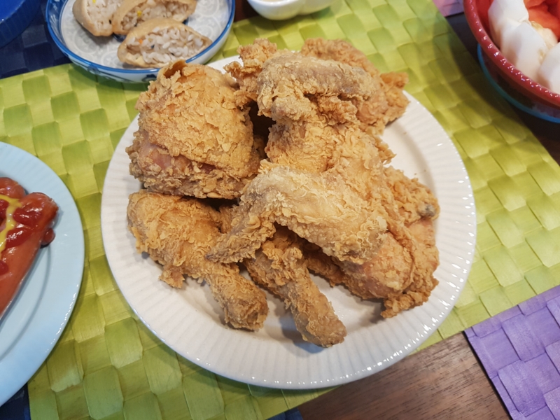 주문후에 즉석에서 튀긴걸 받아와서 그런지 K모 치킨보다는 맛있는것 같습니다..