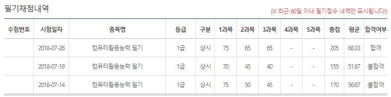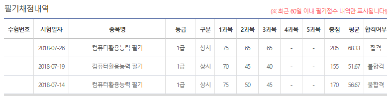 3과목인데 평균 60점이상 180점 맞으면되는데